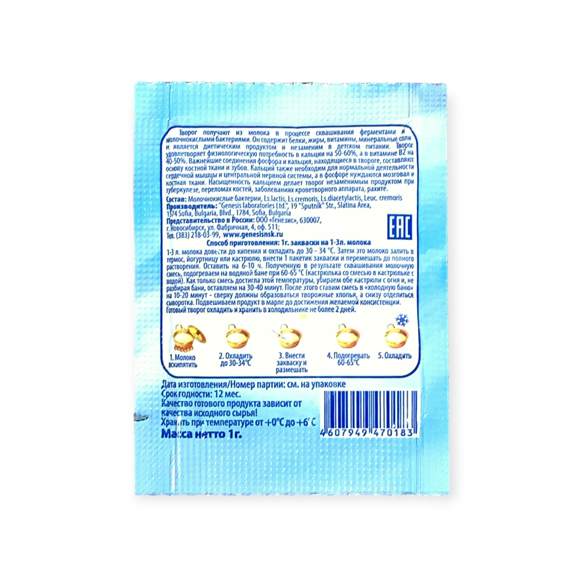 Закваска Творожок Genesis, 1 пакет от 100 руб. с доставкой. Пункт выдачи в Покровске. Интернет магазин по сыроделию. Всё всегда в наличии.